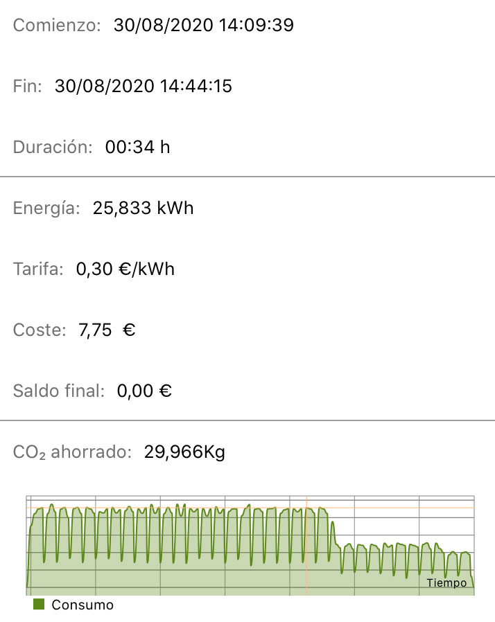 Al final con un precio por kwh de 0,3 y un consumo de 17kwh /100km estamos en unos 5€ cada 100km. Muy similar a un diésel.